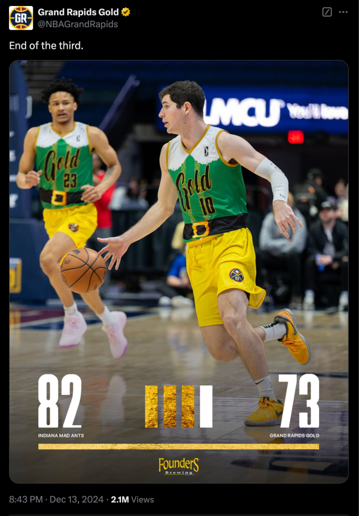 Previously, I have written copy and posted mid-game updates for the Grand Rapids Gold on Instagram, Facebook and X.